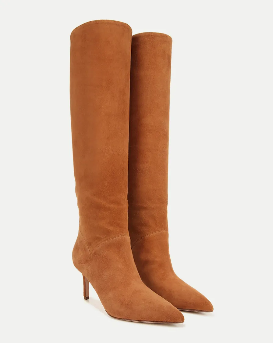 Crafted from smooth hazelwood suede, the Lexington boots have a minimalist design with pointed toes and 2.