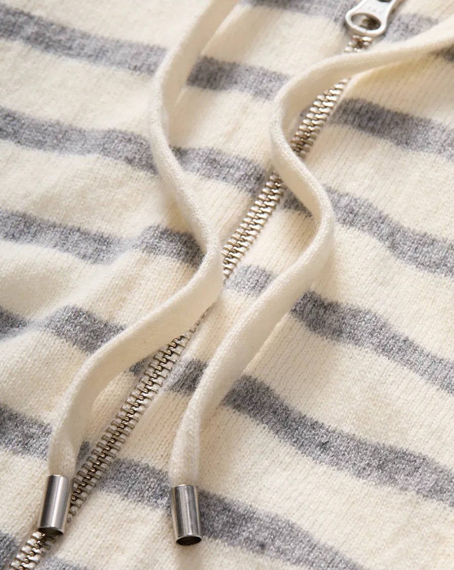 Spun from a luxe blend of soft cashmere and merino wool, this hoodie dickey is defined by gray nautical stripes and is the ultimate cold-weather layer.
