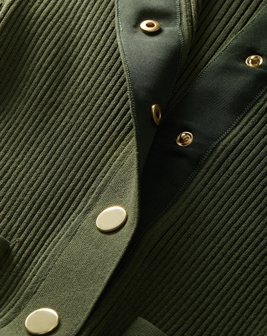 Spun from a sporty stretch knit, the Lauper features allover ribbing, a trim collar, and slim bishop sleeves with an extended cuff.