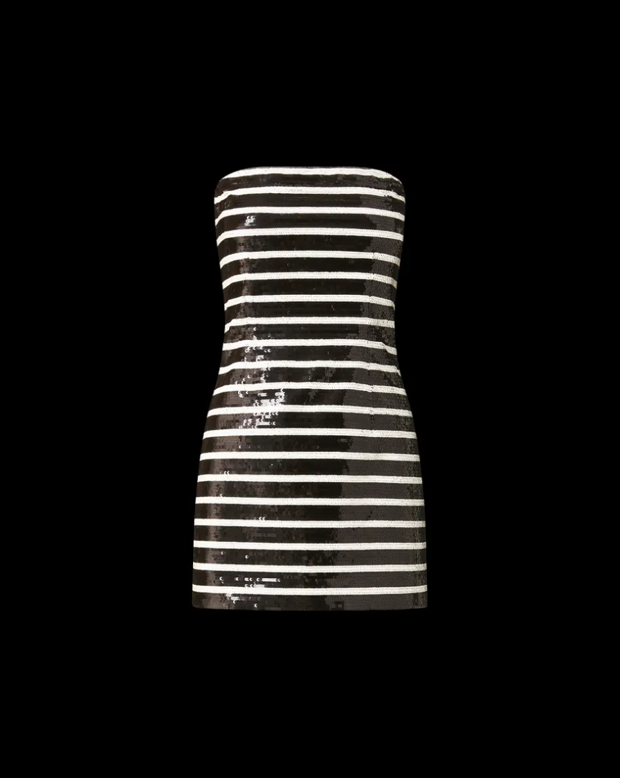 Expertly tailored from premium stretch cotton, the Cala is a strapless, body-con minidress covered in allover sequins.