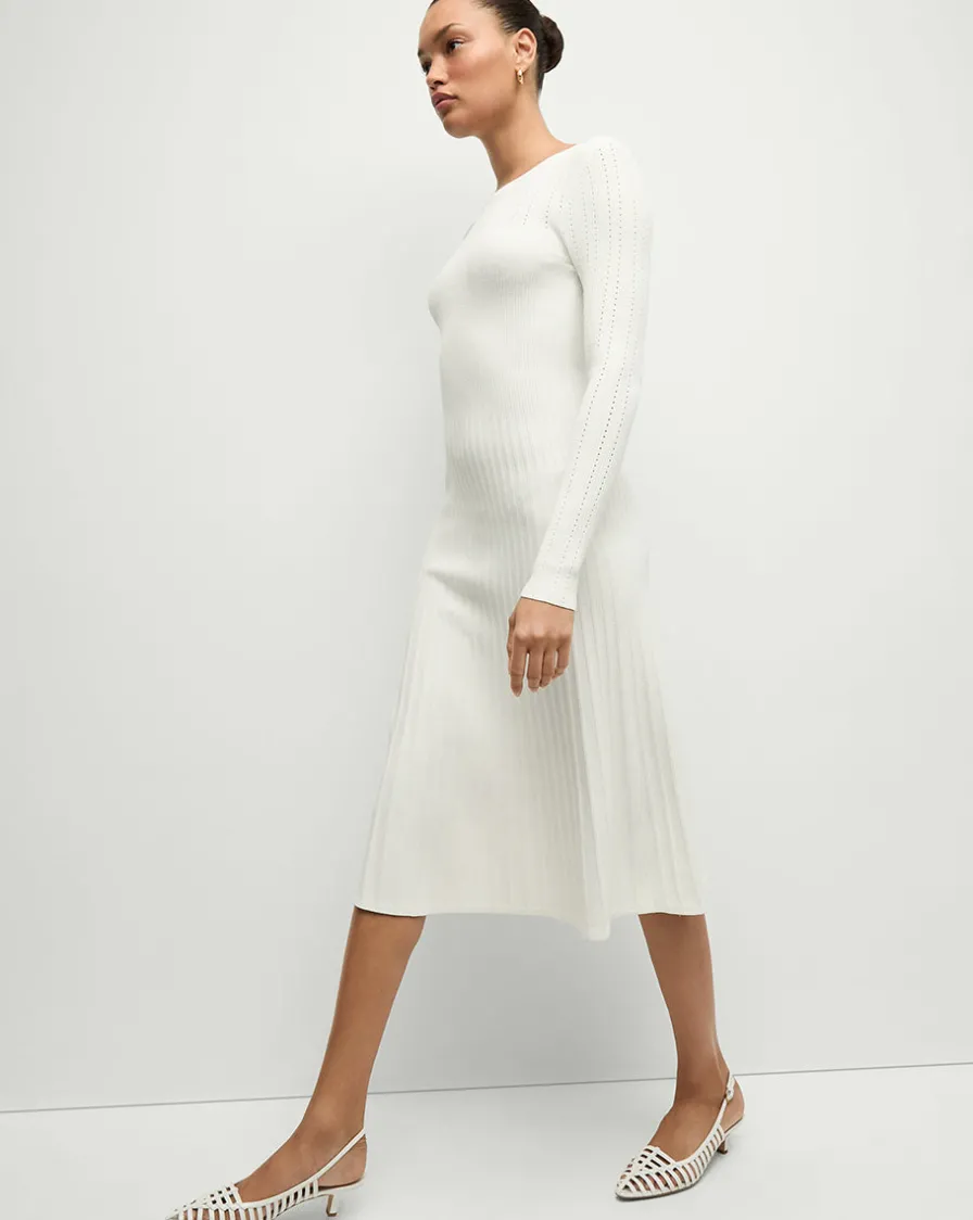 The ease of a sweater dress in a fit-and-flare silhouette.