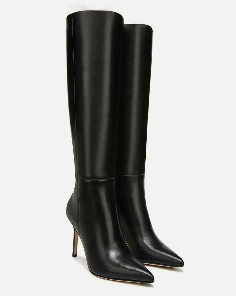 The knee-high Lisa boot features a stiletto heel and pointy-toe finish.