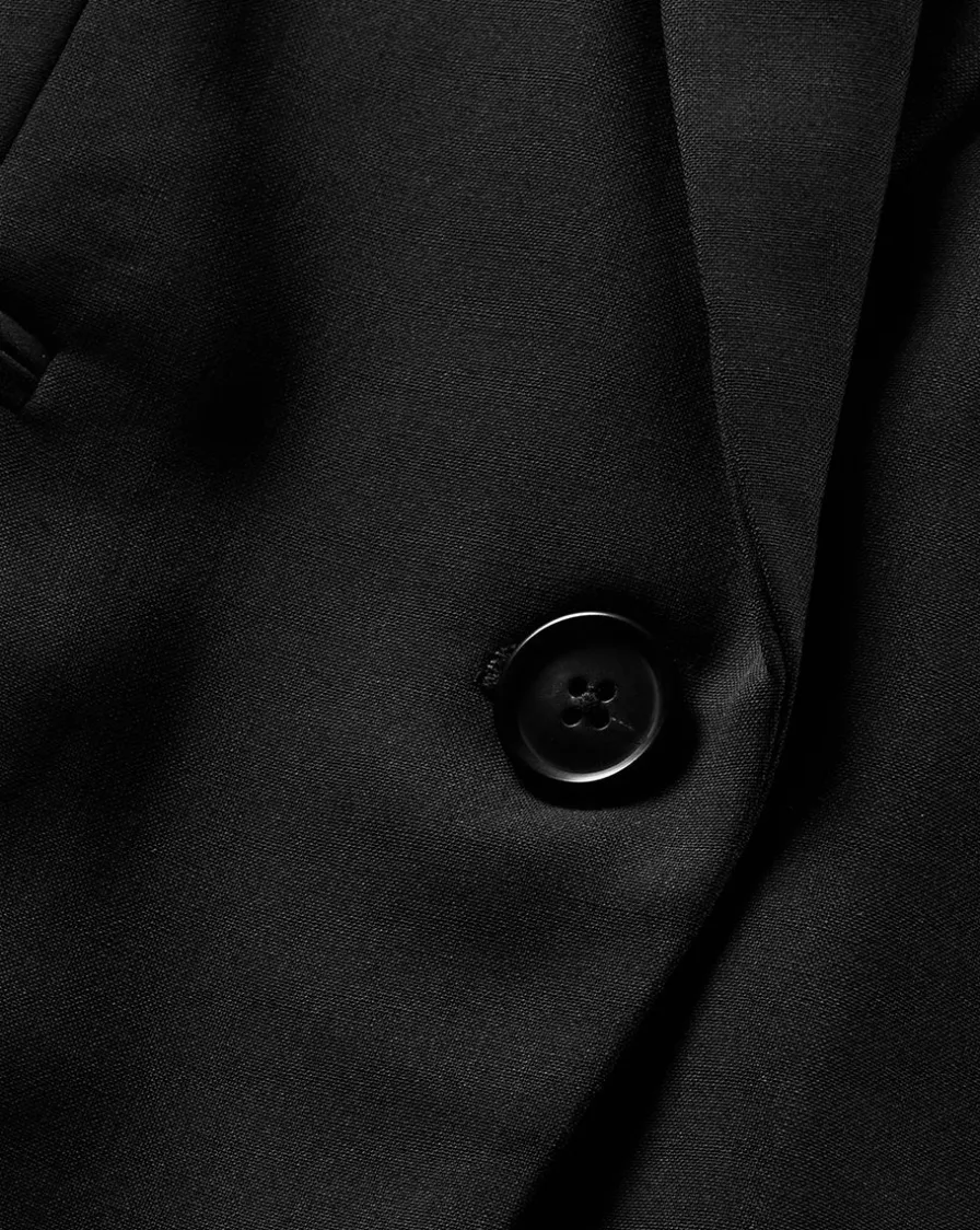 The Classic Jacket features a single button closure and double vent in the back for a flattering fit on all sizes.