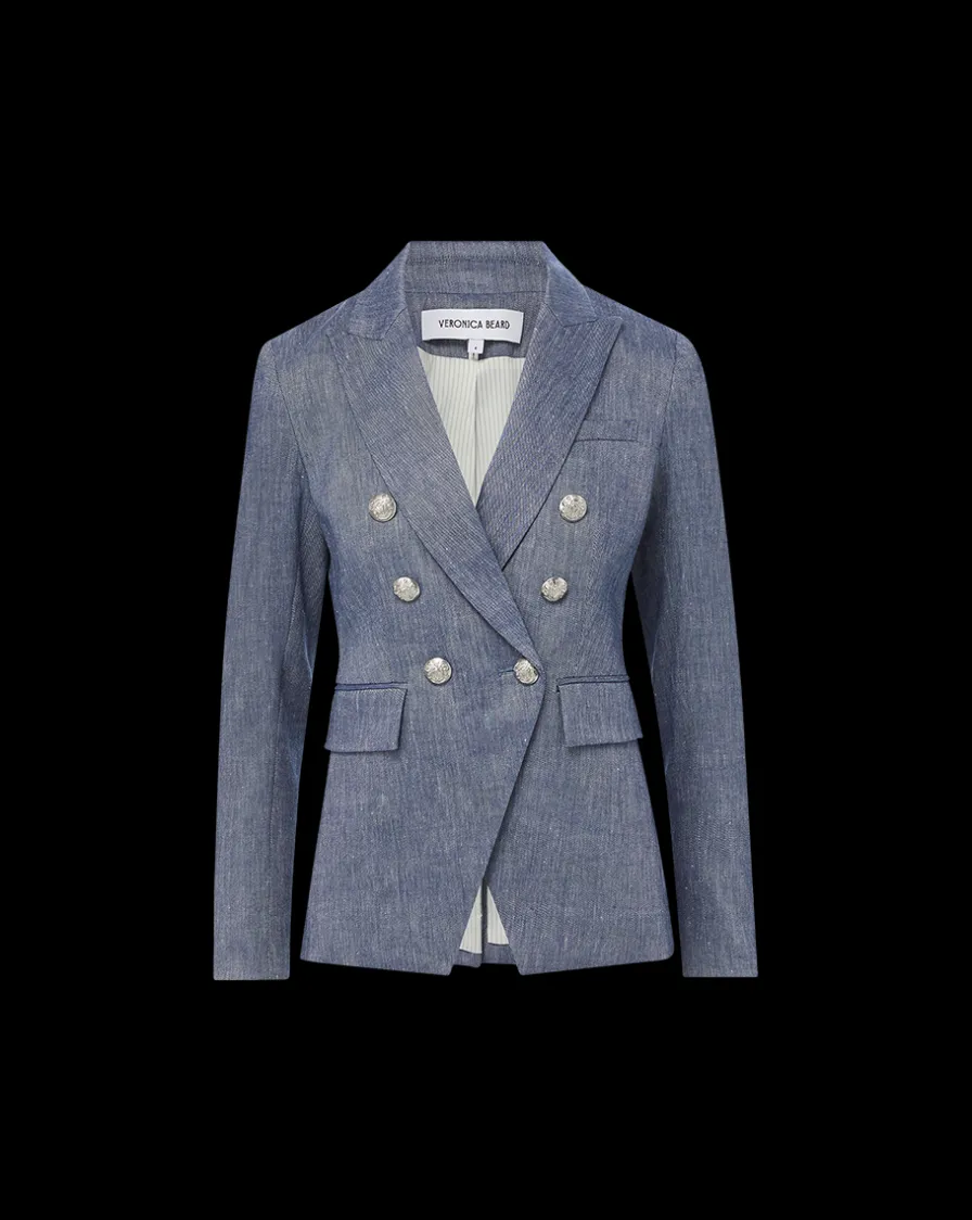 Veronica Beard Jackets & Outerwear|Extended Sizes>Miller Linen Dickey Jacket in Blue Melange