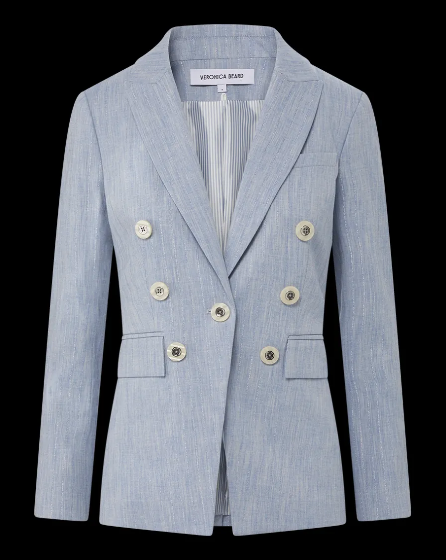 Veronica Beard Jackets & Outerwear>Gaya Metallic Pinstripe Dickey Jacket in Blue Oasis