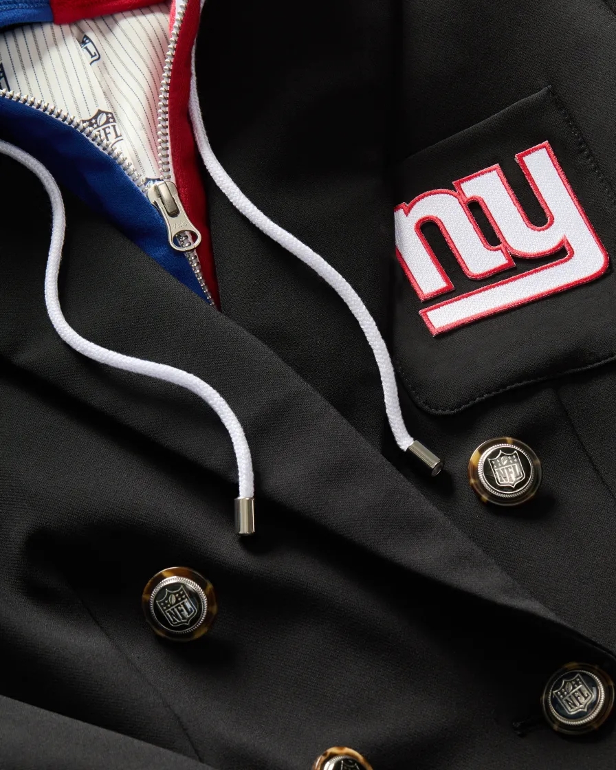 Done in collaboration with the NFL, this expertly tailored black jacket is crafted from wrinkle-resistant scuba with subtle stretch for comfort and ease of movement.