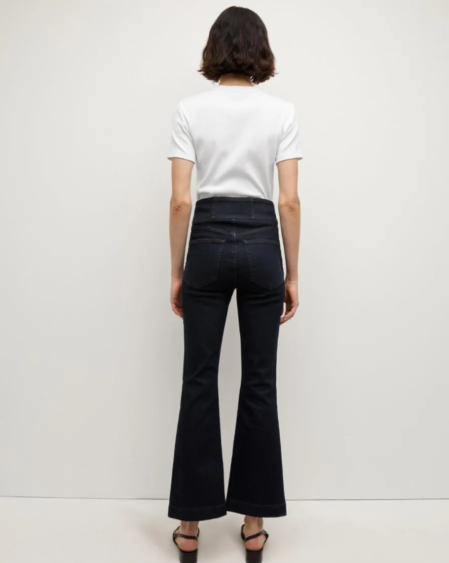 Made in LA from Japanese stretch denim, this high-rise flare features a slim fit and a slightly cropped length that suits flats and heels alike.