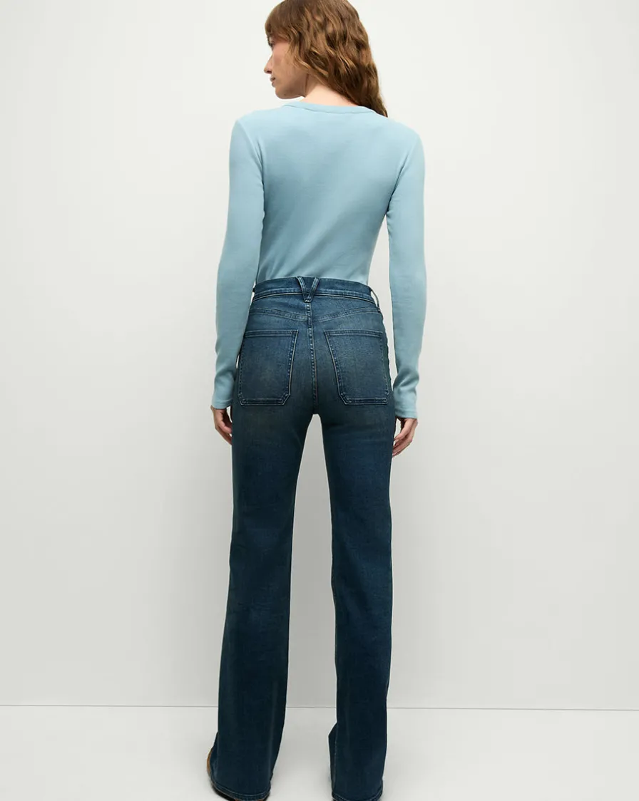 Made in LA from super-stretch Italian denim, this high-rise, wide-leg silhouette is finished with both front and back patch pockets.