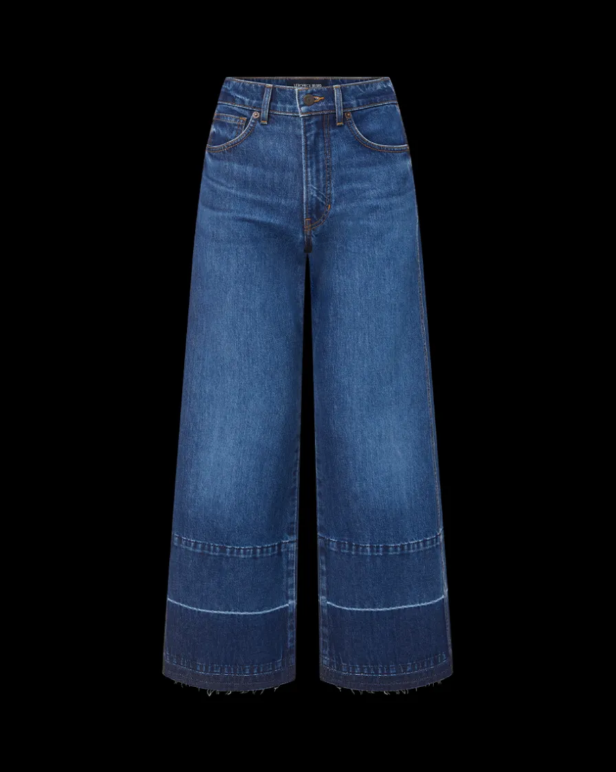 Veronica Beard Jeans>Taylor Released Hem Cropped Wide-Leg Jean in Bright Blue