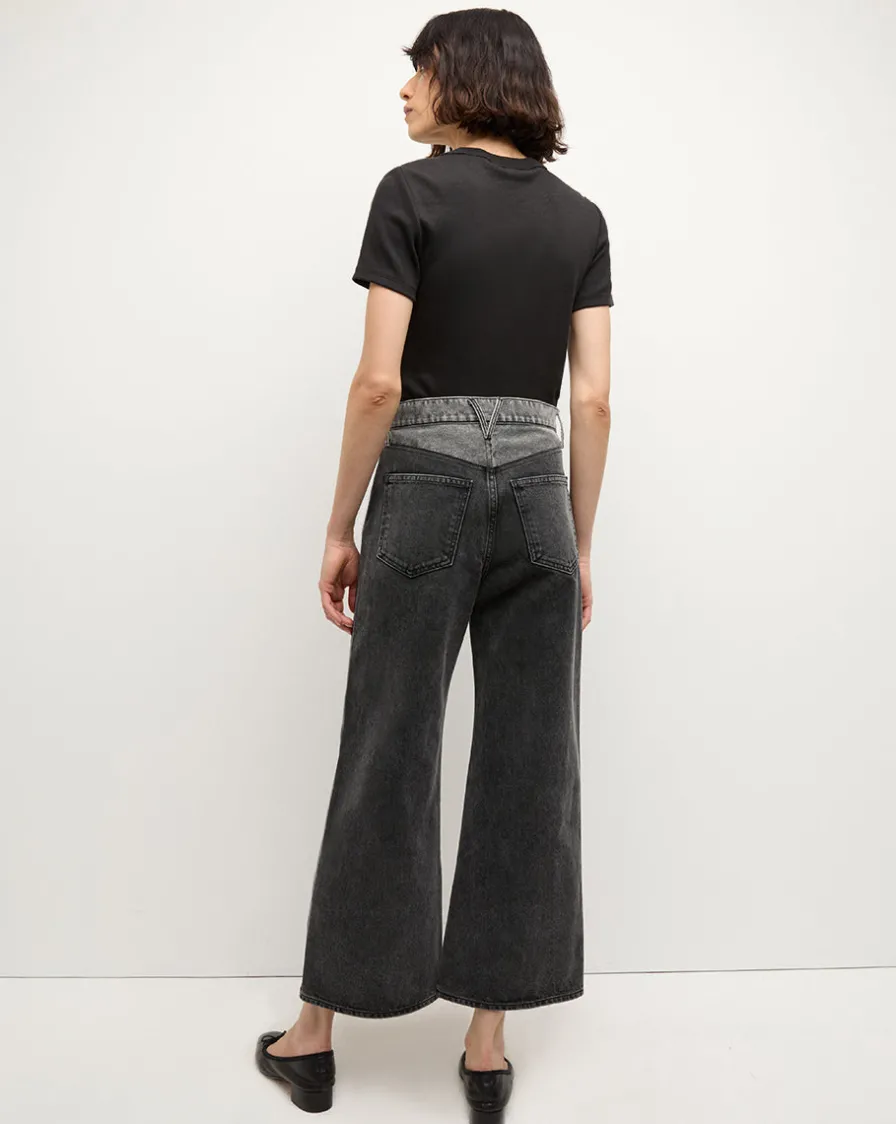 Veronica Beard Jeans>Taylor Two-Tone Cropped Wide-Leg Jean in Volcanic Stone Colorblock