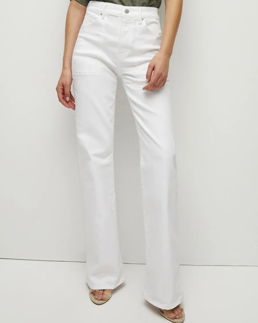 Updated in clean white, our elongating Crosbie jeans feature a flattering high-rise, patch pockets and wide-leg silhouette that is forever chic.