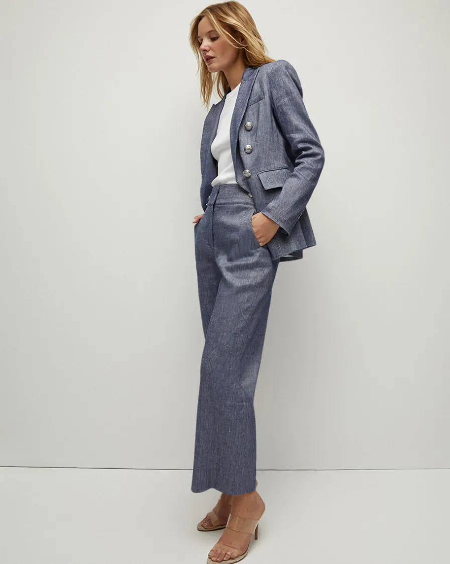 Veronica Beard Pants|Extended Sizes>Aubrie Linen Pant in Blue Melange