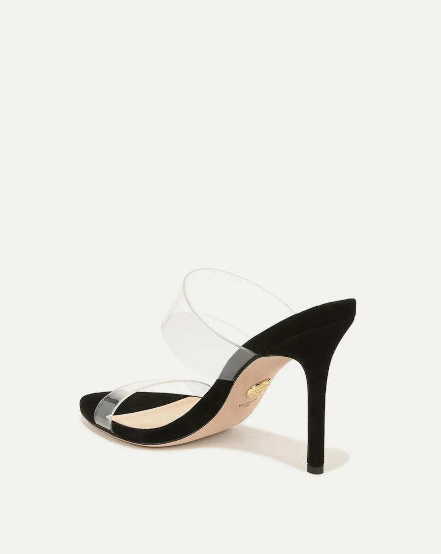 With a double-strap PVC vamp, a nude suede base and a 4″ stiletto heel, this beautifully crafted style comes with magically, leg-lengthening powers.