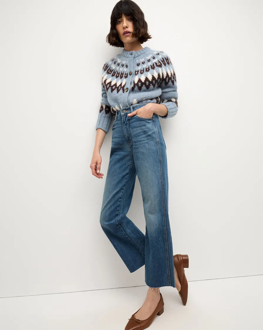 Veronica Beard Sweaters|Tops>Christina Fairisle Cardigan in Smoke Blue Multi