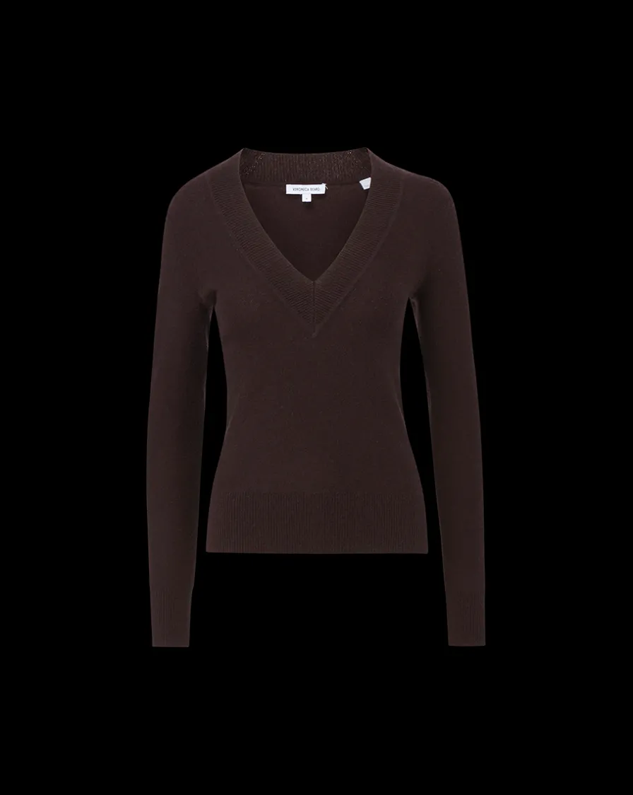 Veronica Beard Sweaters|Tops>Coleta V-Neck Cashmere Sweater in Dark Chocolate