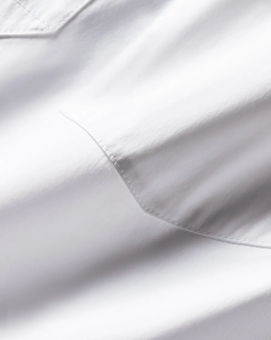 Expertly tailored from premium cotton poplin—with stretch for ease—this billowy, relaxed silhouette is finished with a neat collar, a split V-neck and a single patch pocket.