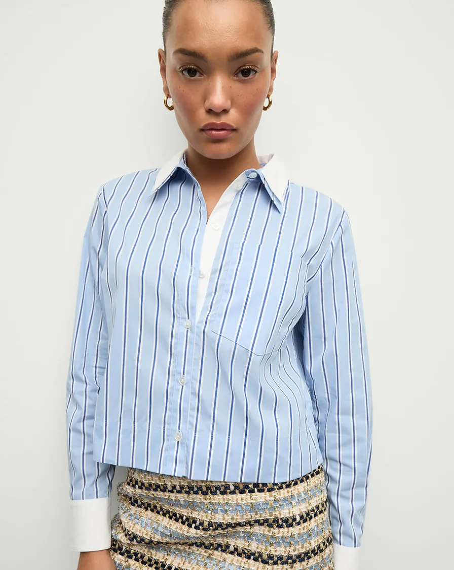 Veronica Beard Tops>Maia Double-Collar Shirt in Blue Sky/White