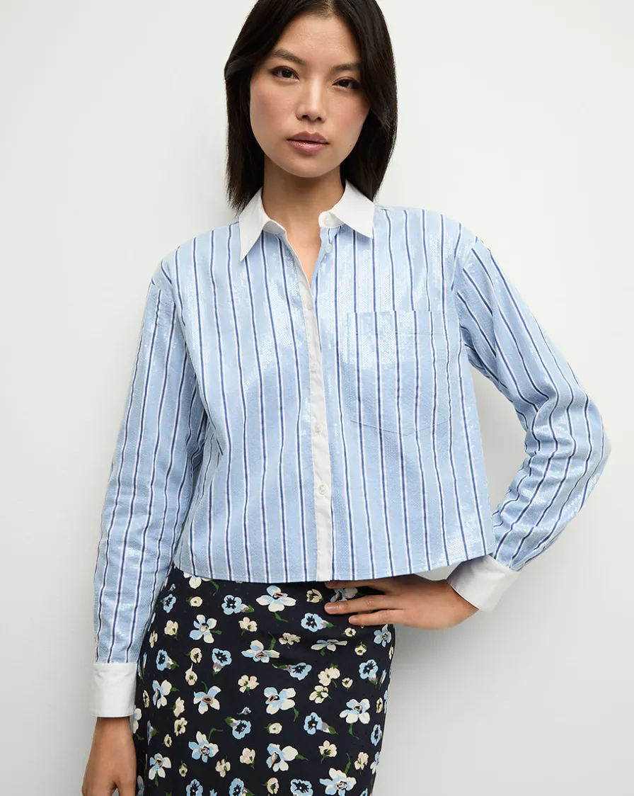 Be the first to review “Veronica Beard Tops>Maia Sequin Shirt in Blue Sky/White” Cancel reply