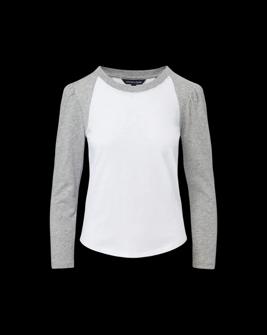 Veronica Beard Tops>Mason Baseball Tee in White/Heather Grey