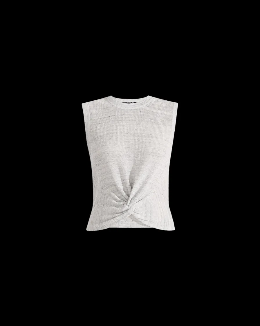 Crafted from a linen-blend, this twist-hem top features a classic crew neckline and sleeveless silhouette.