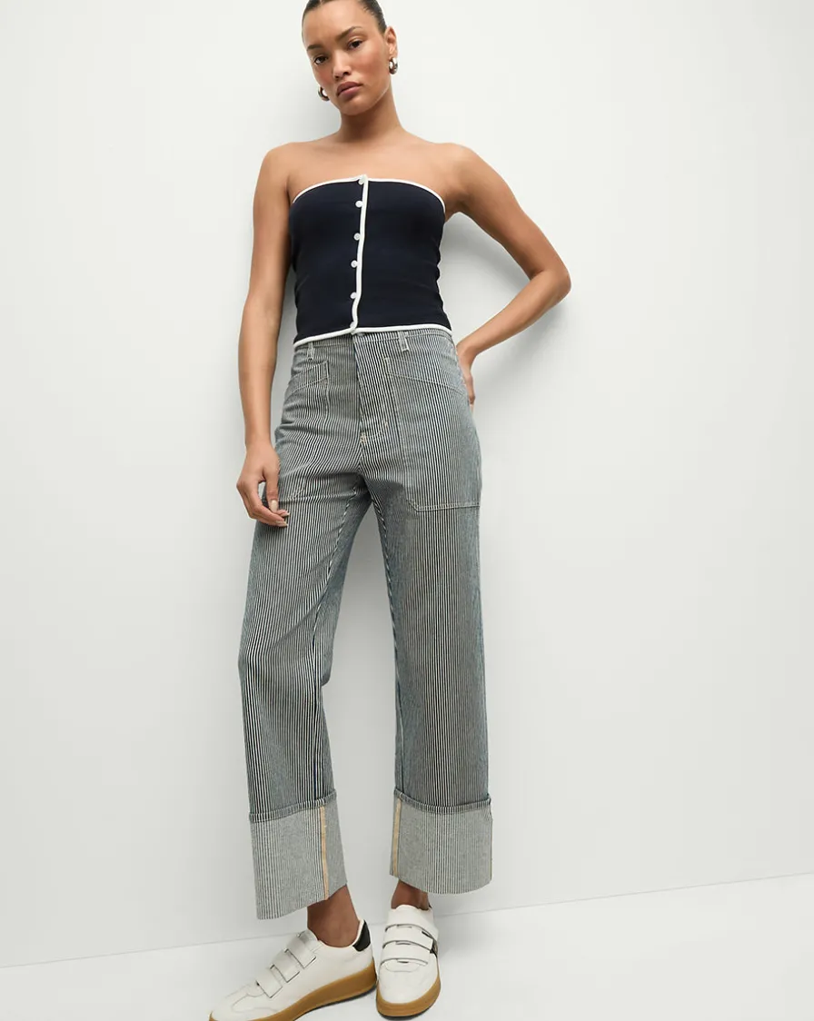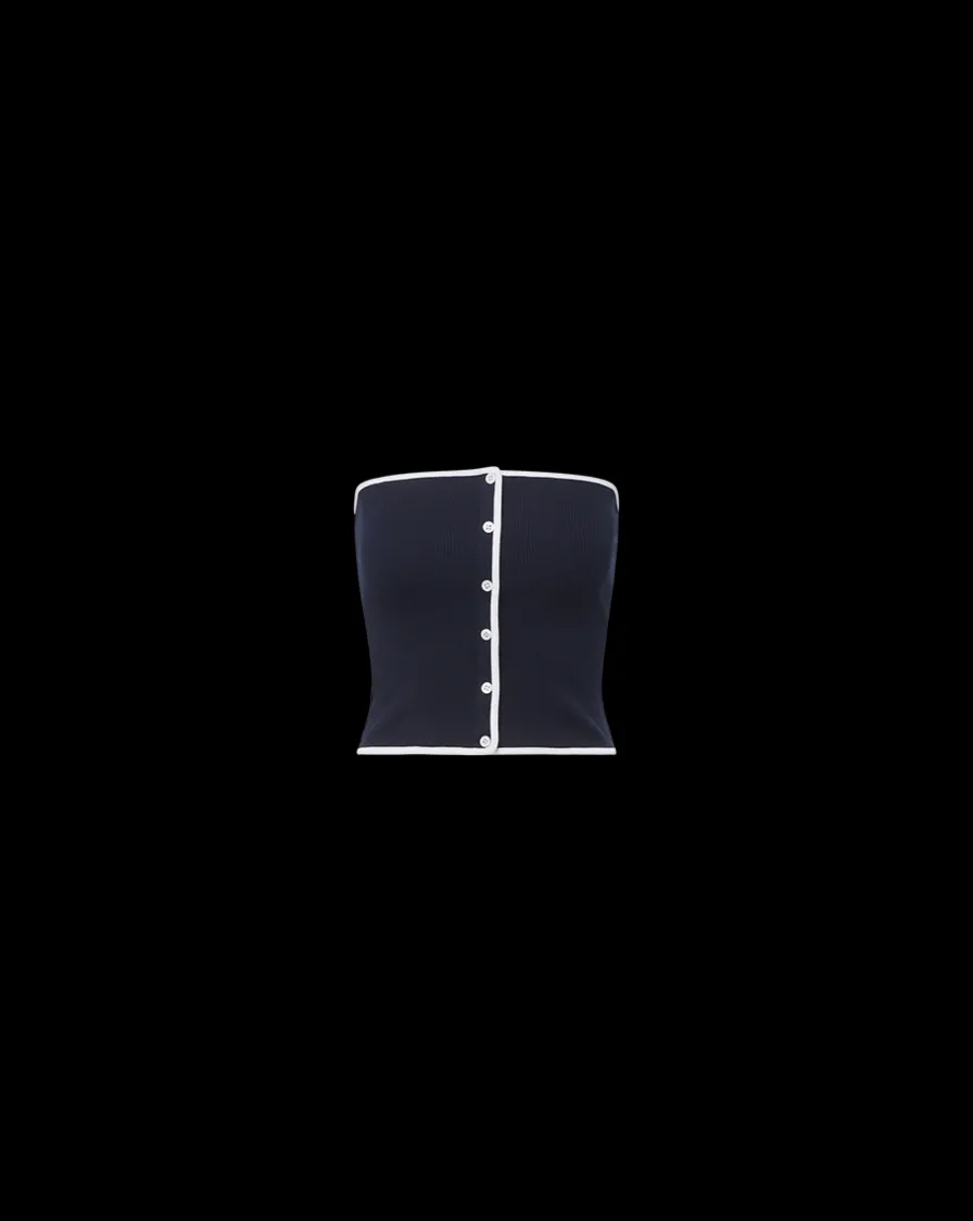 Spun from soft stretch cotton, the Valley tube top features a slim fit and contrast-color piping for graphic edge.