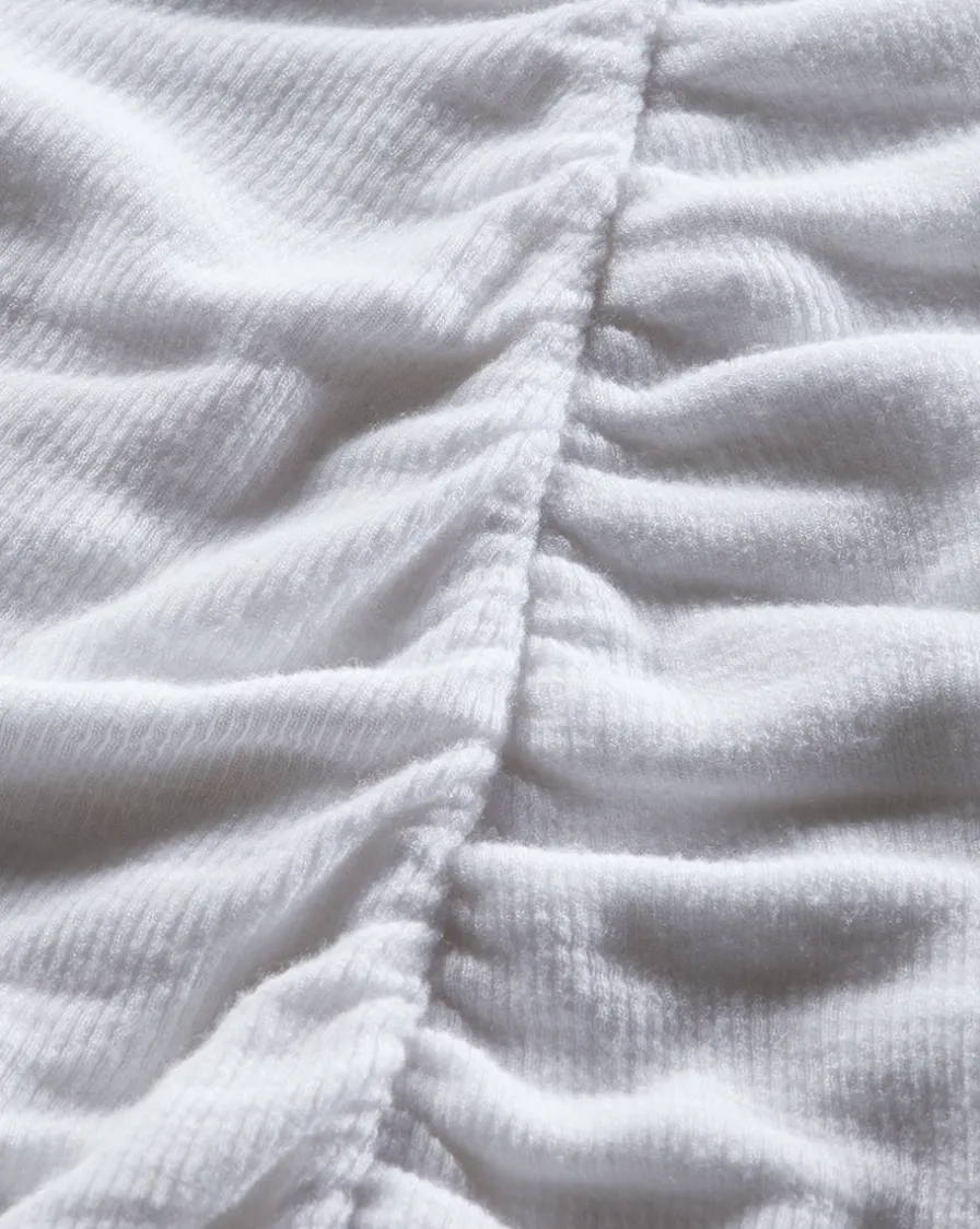 Our Theresa turtleneck features center front ruching, making it a figure-flattering wardrobe staple.