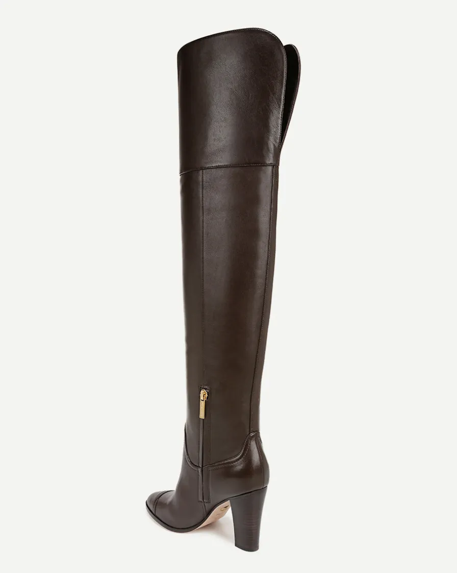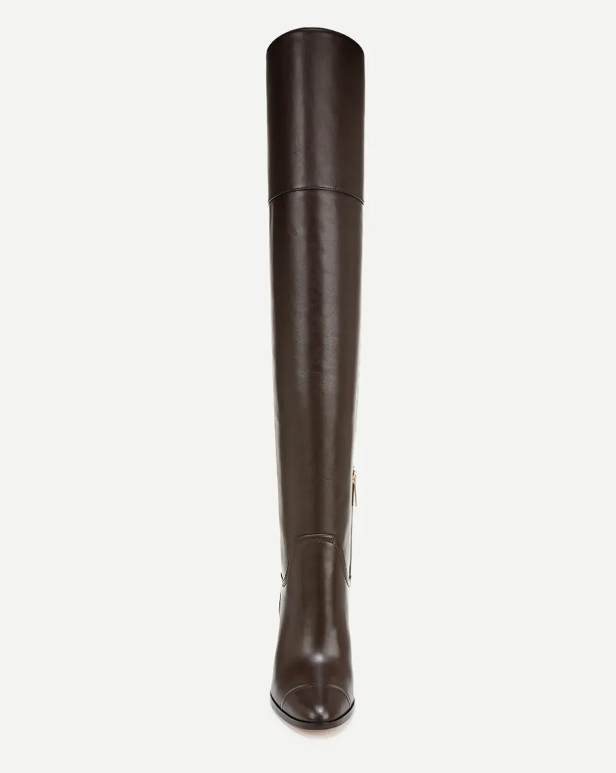 Crafted from smooth leather, this over-the-knee tall boot features an almond cap-toe and side zipper and elevates any look with ease.