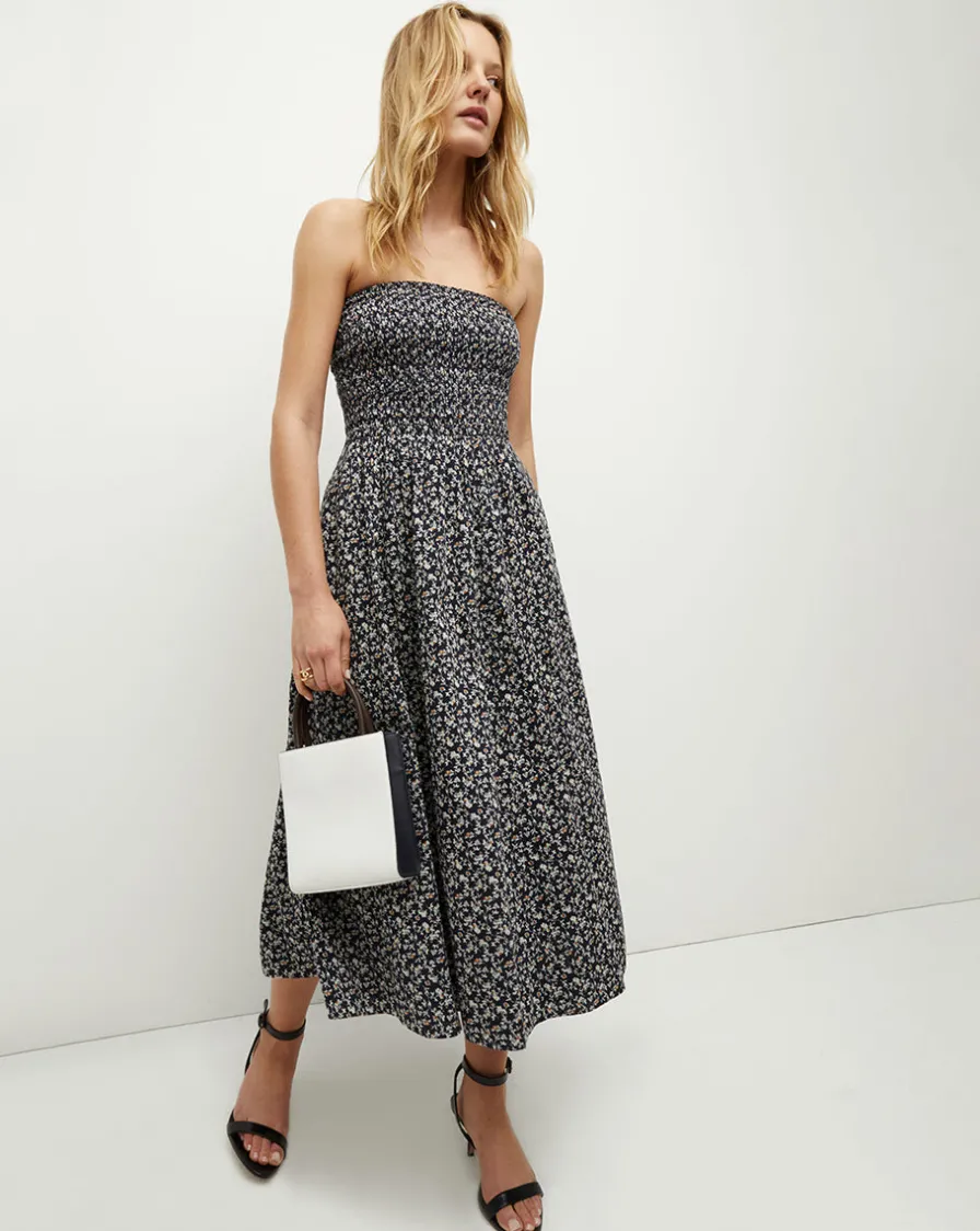 Made from 100% cotton, the strapless Cornelia features intricate smocking at the bust and an allover ditsy floral print.