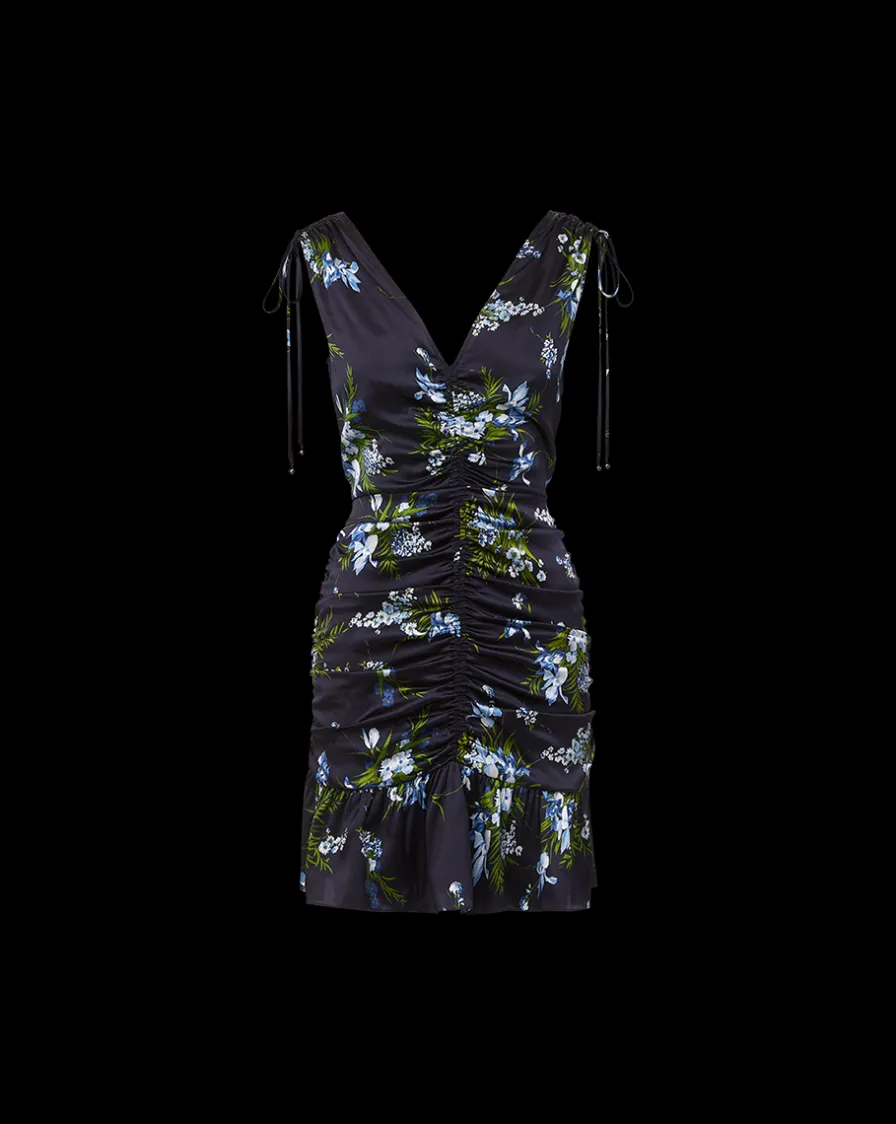 Gently ruched for a waist-defining bodice, it falls to a fluttery flounce hem.
