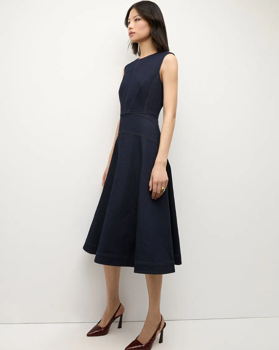 Veronica Beard Dresses>Karrigan Denim Midi Dress in Dark Wash