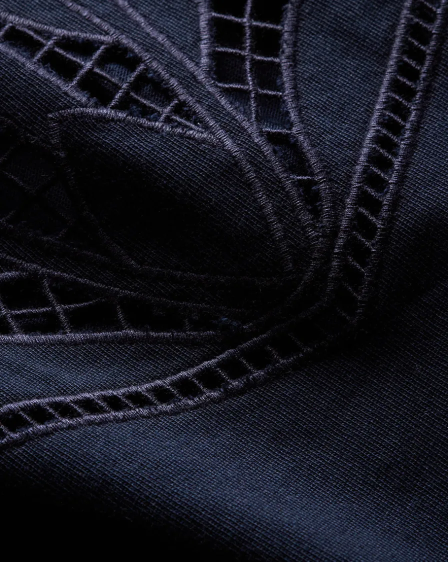 Cut for a relaxed fit from 100% cotton, its mini shift silhouette is finished with feminine cap sleeves and embroidered cutwork at the yolk.