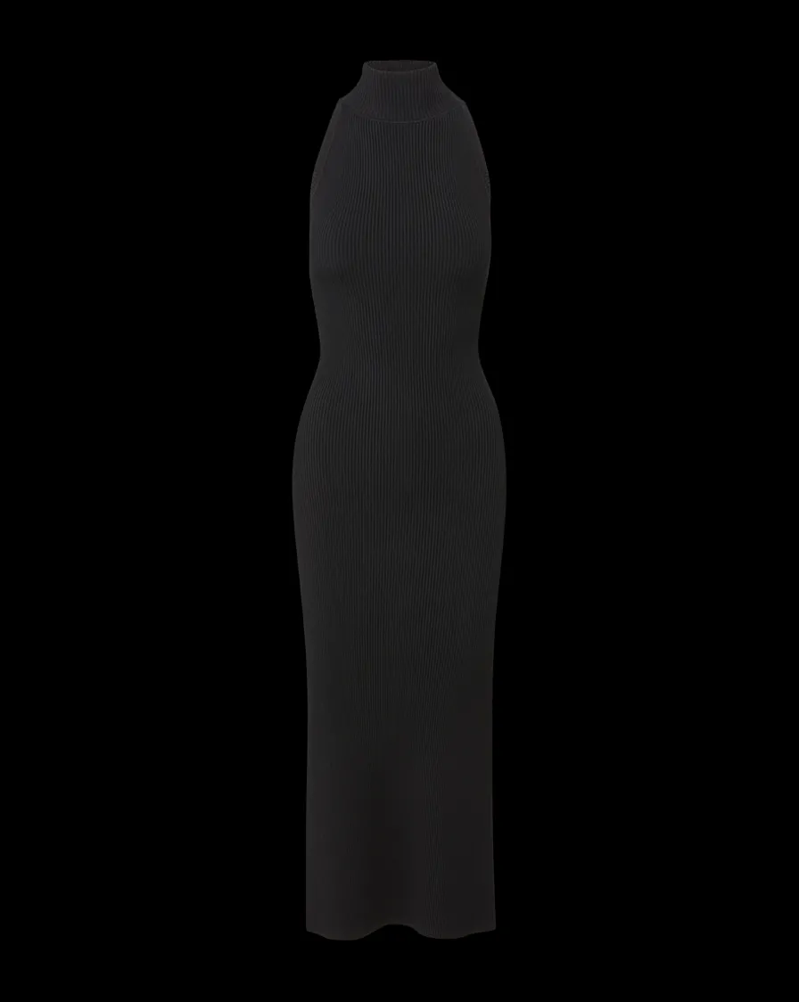 Spun from an exceptionally soft stretch knit, the Briggita maxi dress is defined by a turtleneck halter and a body-skimming silhouette.