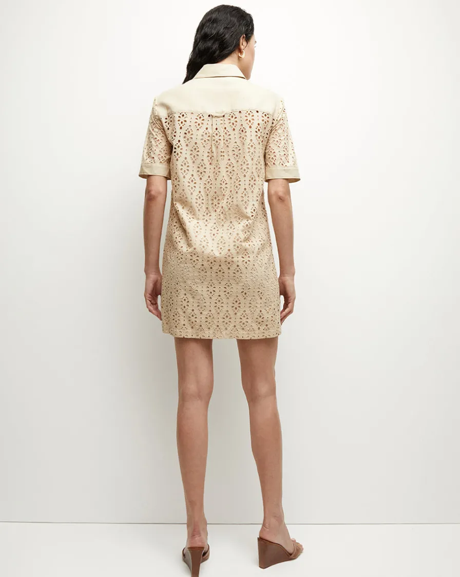 Veronica Beard Dresses>Rafaela Cotton Eyelet Shirtdress in Stone Khaki