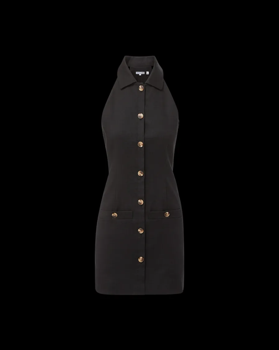 The borrowed-from-the-nineties silhouette is tailored for a close fit from a French-made linen blend and finished with tortoise buttons.