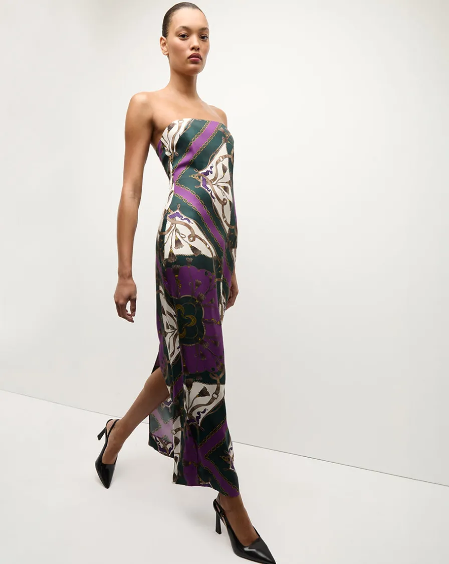 Veronica Beard Dresses|The Veronicas’ Favorites>Flora Silk Strapless Maxi Dress in Green & Purple
