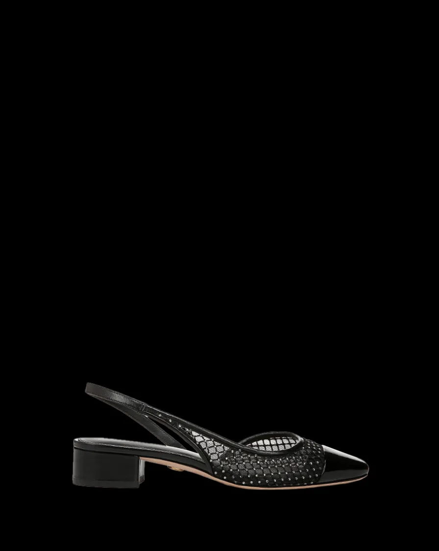 Veronica Beard Flats & Loafers|Party Dressing>Cecile Rhinestone Mesh Cap-Toe Slingback in Black Rhinestone