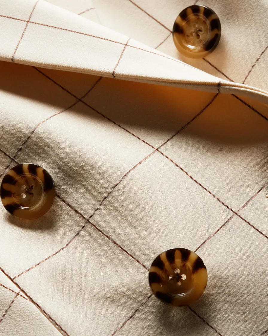 Featuring a thin windowpane check, the Charleston is tailored for a boxy, relaxed fit.