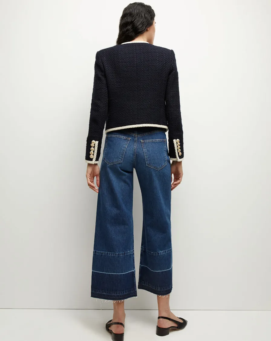 Expertly tailored from stretch cotton, the Mabel is defined by a boxy, cropped fit and a collarless design.