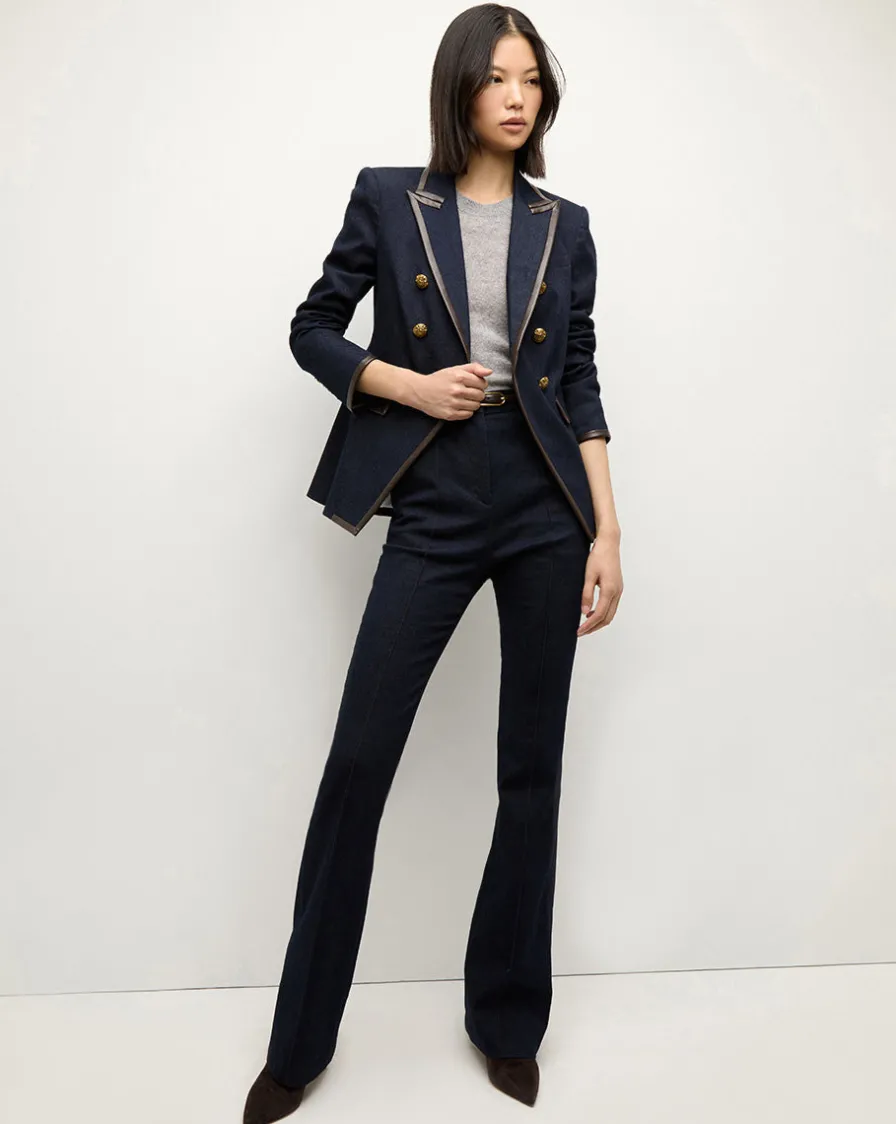 Veronica Beard Jackets & Outerwear|Matching Sets>Miller Denim Blazer Dickey Jacket in Dark Wash