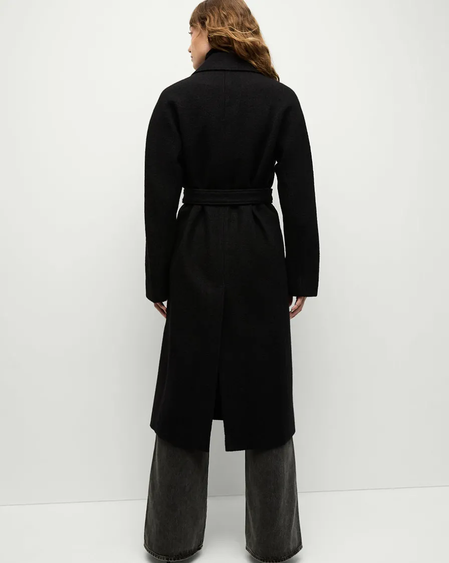 Breathable, durable, and insulating, this exceptionally soft coat is defined by a relaxed fit and a self-tie belt for an effortlessly chic look.