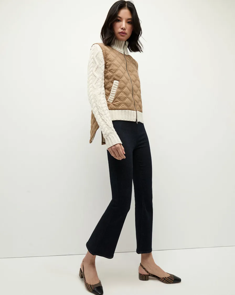 We combined a quilted water-resistant body with cable-knit sleeves and ribbed trimming—the ultimate in relaxed-meets-refined.