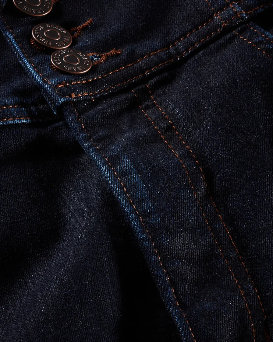 98% Cotton, 2% Polyurethane Made in USA from premium Japanese denim Turn inside out and machine wash cold.