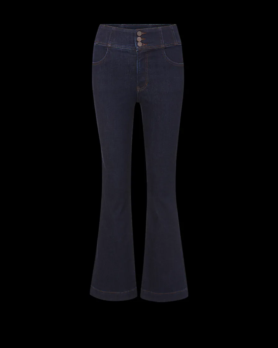 Veronica Beard Jeans>Carson Corset Waist Kick-Flare Jean in Indigo Rinse