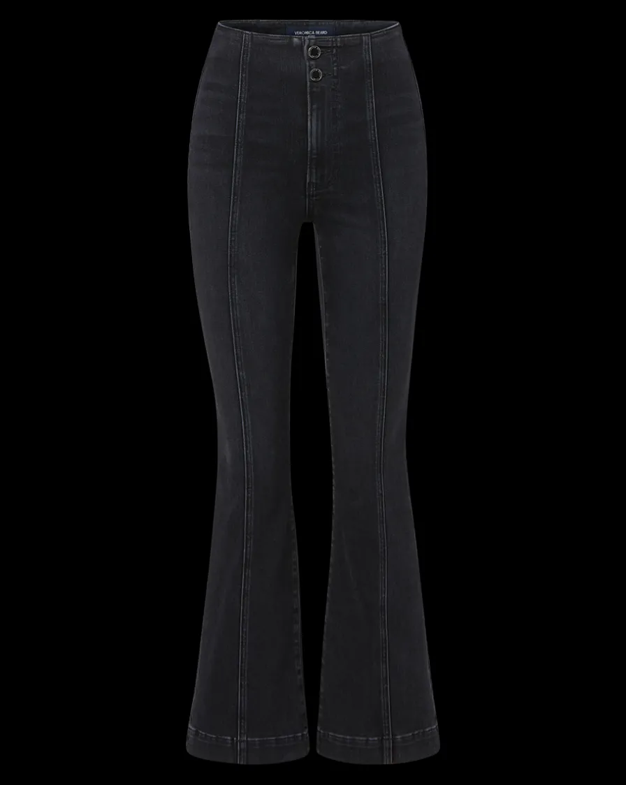 Veronica Beard Jeans>Carson Kick-Flare Jean in Washed Black Denim