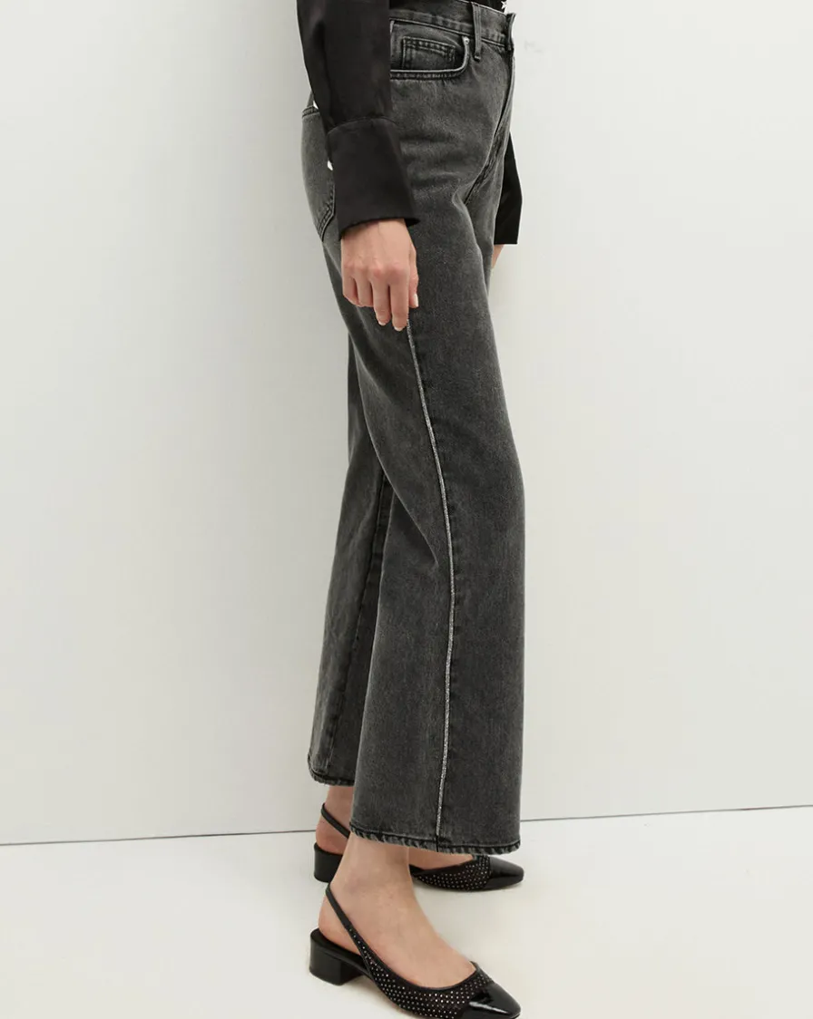 Veronica Beard Jeans|Party Dressing>Dylan Rhinestone-Stripe Straight-Leg Jean in Washed Black