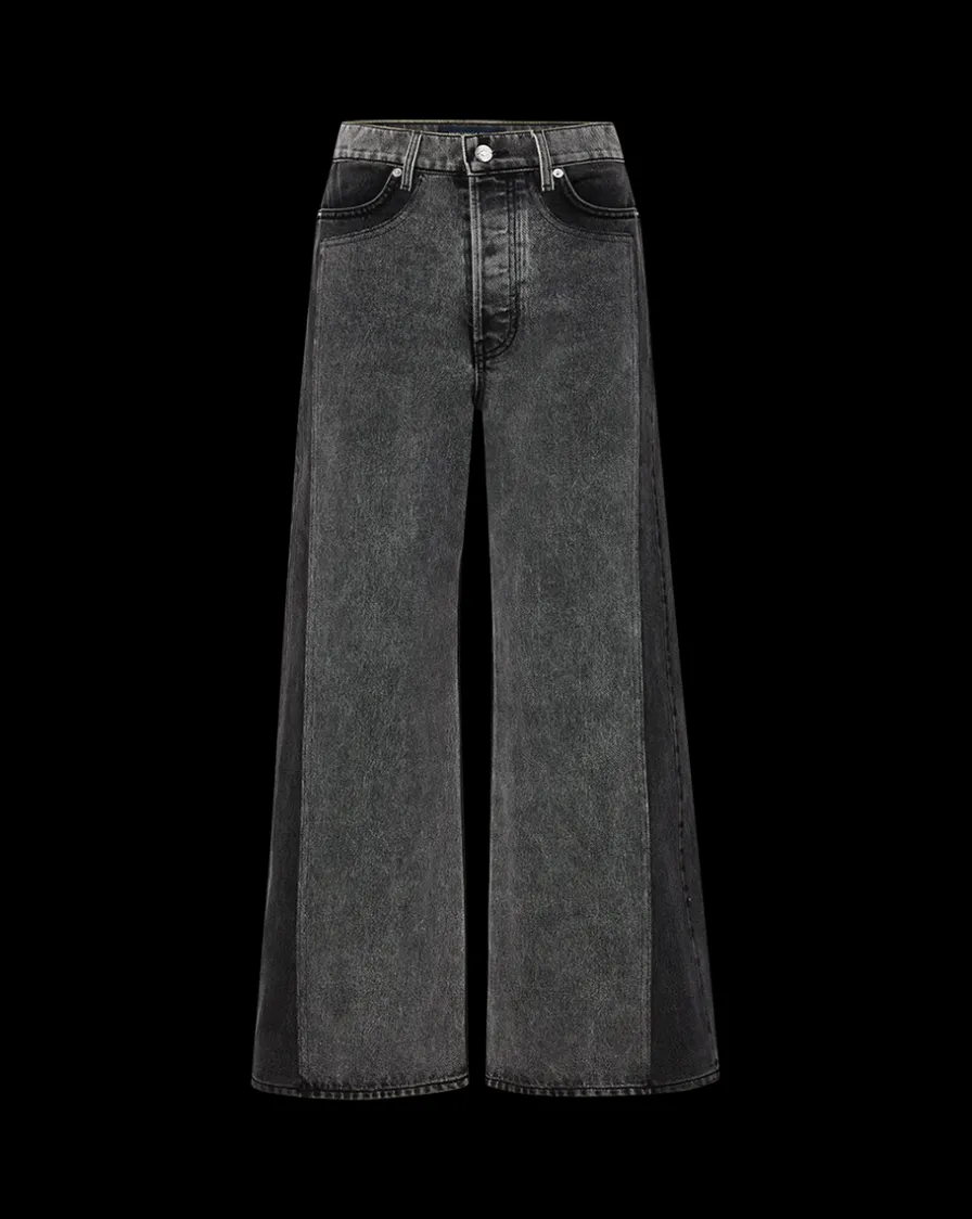 Made in LA from non-stretch Turkish denim, this high-rise, wide-leg style features a smoky gray wash in the front and an onyx wash in the back.