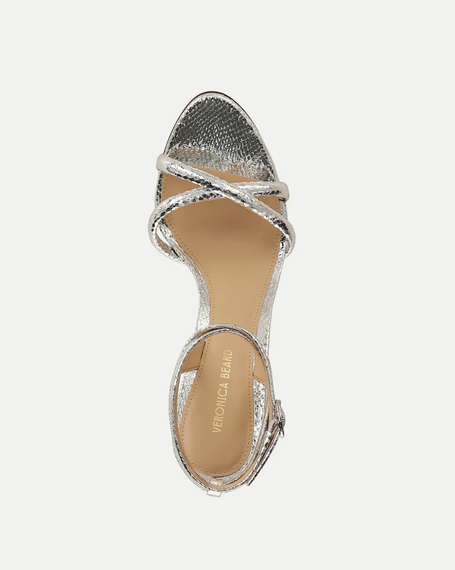 Crafted from croc-embossed metallic leather, this expertly-made style sets the tone for evenings out with its crisscross strap upper and supportive wrap-around ankle straps.