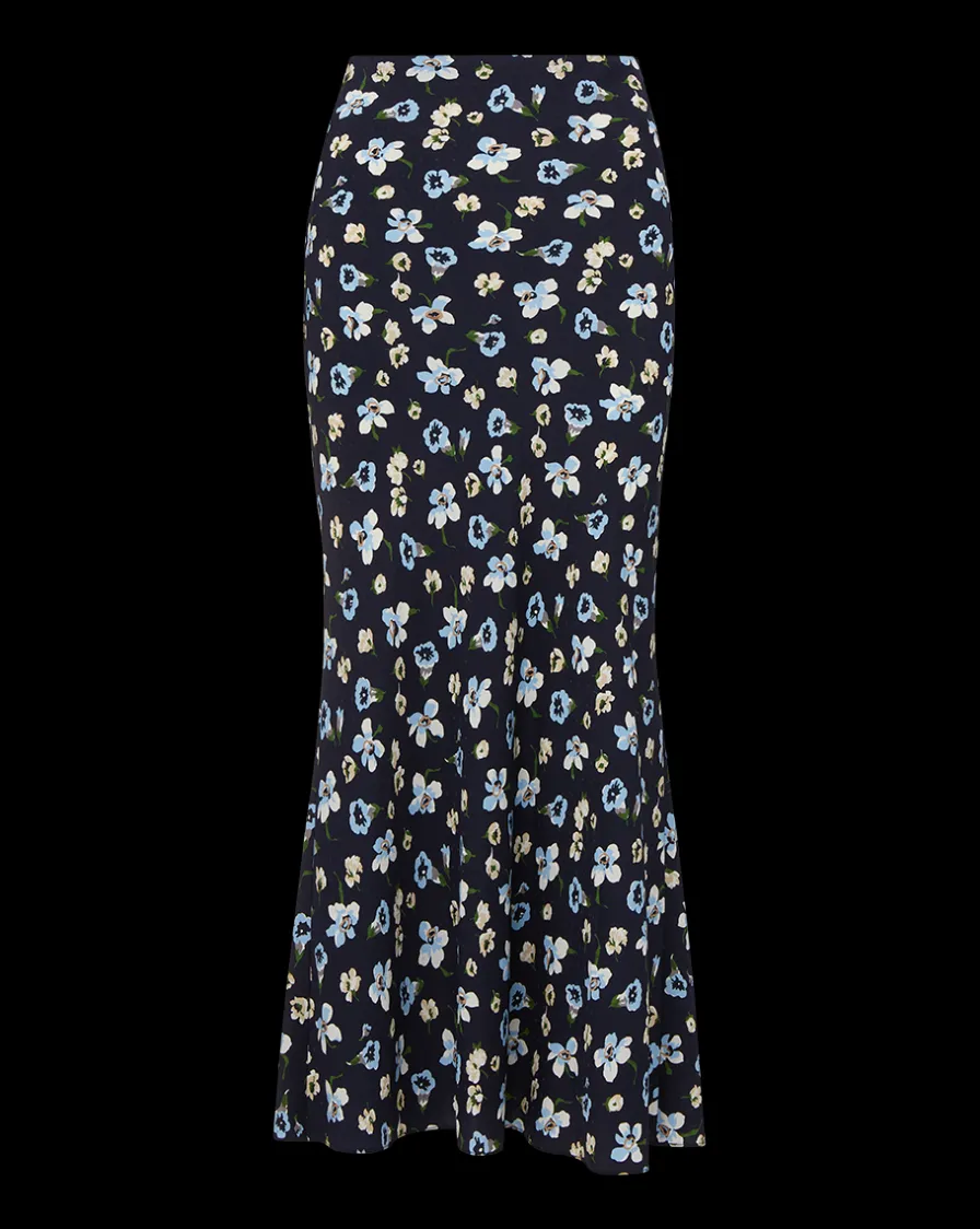 Veronica Beard Skirts & Shorts>Clover Stretch-Silk Floral Skirt in Navy Multi