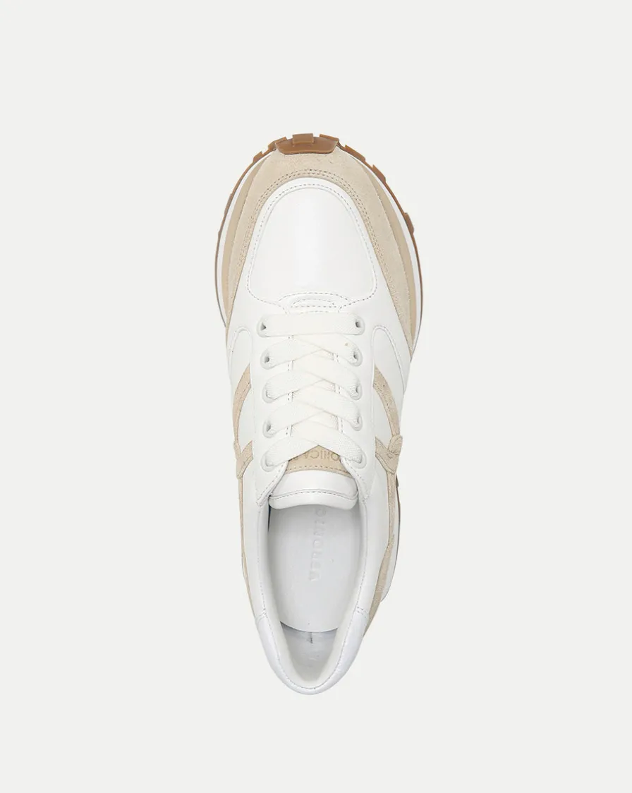 The Valentina sneaker combines flattering lines and comfort: a padded collar, a cushioned midsole with a one-inch lift, a rubber outsole for grip and suede details in the toe cap and back.