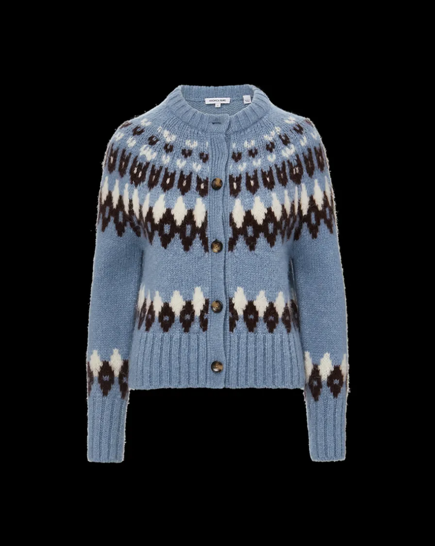 Veronica Beard Sweaters|Tops>Christina Fairisle Cardigan in Smoke Blue Multi